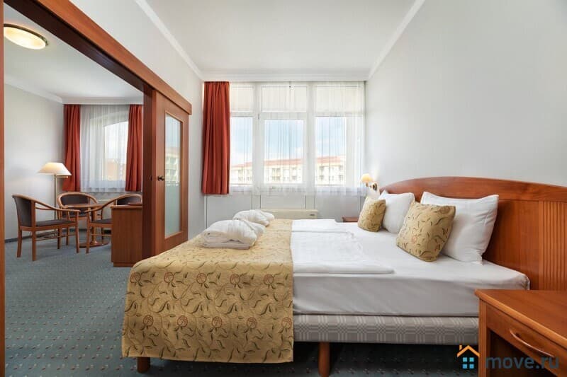 Венгрия. Залакарош. Лечебная гостиница в курортном городе. Идентификатор: 129 Лечебная гостиница в курортном г. Залакарош - ТОЛЬКО У НАС 19 900 000 € Площадь 25192м2 Залакарош со своими целебными источниками является молодым, однако известным курортом и бальнеологическим центром Западной Венгрии. Расположение необыкновенно хорошее – 6 км до скоростной трассы Будапешт-Венеция-Милан-Ницца, 10 км до а/п Хевиз-Балатон, 20 км до Хевиза и до Балатона. Самое значительное сооружение городка Отель KAROS SPA 4*, состоящий из двух корпусов. Общая пл. участка: 35 557 м2 Кол-во строений: 2 Общая пл. строений брутто: 28 400 м2 Общая пл. строений нетто: 25 192 м2 Гостиница Размер участка: 18 000 м2 Год постройки: 2003-2004 г. Кол-во зданий: 1 Общая пл. здания брутто: 17 400 м2 Полезная пл. здания нетто: 15 713 м2 Кол-во комнат: 226 Одноместные: 6 Апартаменты типа Senior: 10 Двухместные: 210 Дом апартаментов Размер участка: 7 557 м2 Год постройки: 2004-2005 г. Кол-во зданий: 1 Общая пл. здания брутто: 11 000 м2 Полезная пл. здания нетто: 9 479 м2 Кол-во комнат: 102 апартамента (из них 8 трехкомнатных, пл. 61 м2, 6 двухкомнатных, пл. 51 м2, 88 двухкомнатных, пл. 45 м2). Из них 14 двухкомнатных, пл. 45 м2 находятся в собственности общества. Остальные находятся в собственности частных лиц. (Управление по всему дому в руках ЗАО.) Служебные квартиры на мансарде: 10 шт. Незастроенный участок: 10 000 м2 На незастроенном участке находятся термальная скважина своей собственности и скважина питьевой воды. Продадим вашу квартиру или дом. Есть выбор квартир и домов в различном бюджете, в том числе и коммерческие объекты